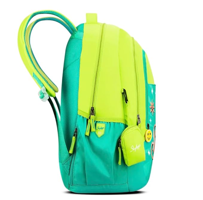 - KEY FEATURES Trendy aesthetics Perfectly designed for her 3 Main Compartments 'Large size; upto 37 liters packing space' 2 Side Pockets 'Convenient to hold Bottles & small Articles' Detachable Happy Pouch. Carry your personal belongings 1 Quick Access Front Pocket Organiser + Key Holder Padded Grab Handle Air-mesh back panel Built to Last Straps File Sleeve Inside Printed ID Tag Secret Pocket